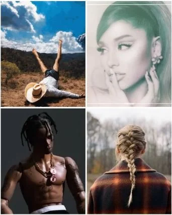 Album covers for 3D Country, Positions, Rodeo and Evermore