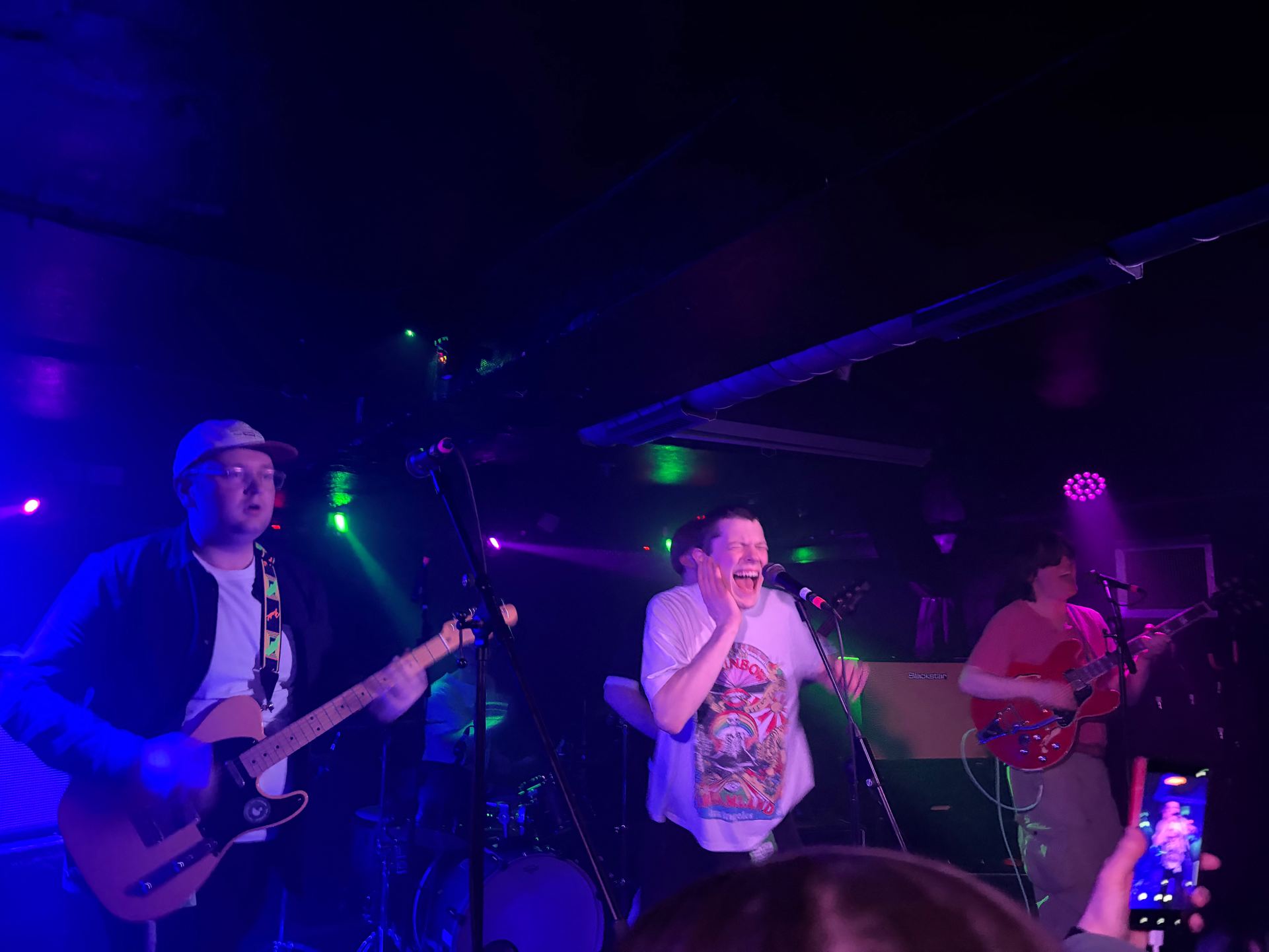 Possibly the highlight of the day was heavyskint. Another Scottish act based in Glasgow, heavyskint is fronted by the charismatic Jacob Hunter. The group walked onto the stage downstairs in Nice’N’Sleazy with ‘Trinidad’ by Geese blaring from the speakers, a bold choice for their entrance that immediately set the tone for the next half hour.